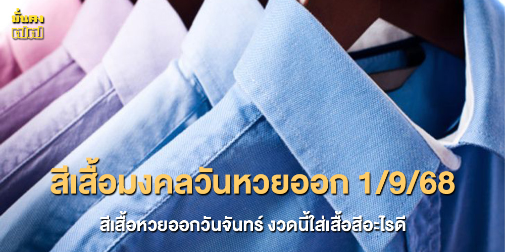 สีเสื้อมงคลวันหวยออก 1/9/68 สีเสื้อหวยออกวันจันทร์ งวดนี้ใส่เสื้อสีอะไรดี