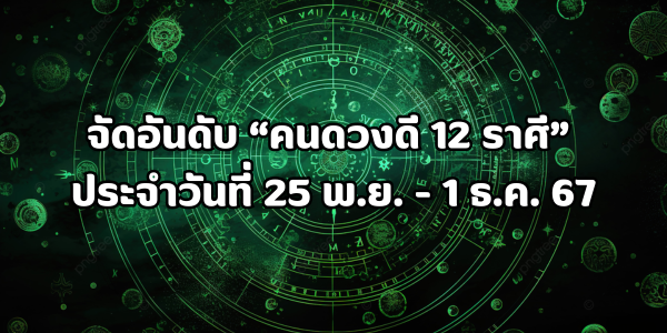 จัดอันดับคนดวงดี 12 ราศี ประจำวันที่ 25 พฤศจิกายน – 1 ธันวาคม 2567 โดย หมอพิพิม อ่านต่อ » November 26, 2024 8:17 am